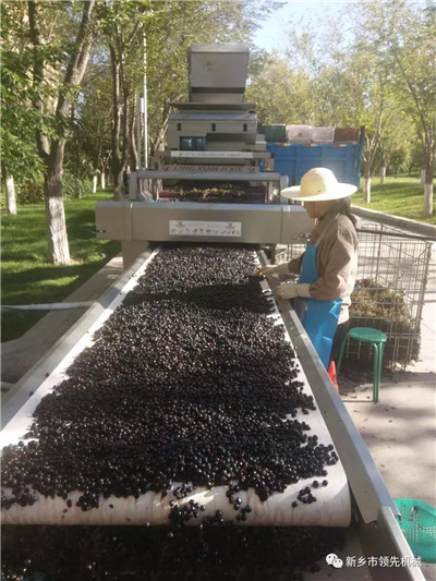 4、粒选-云南网带检果机:将除梗后的葡萄粒在网带检果机上进行第二次人工精筛,去除小果梗和霉烂果。